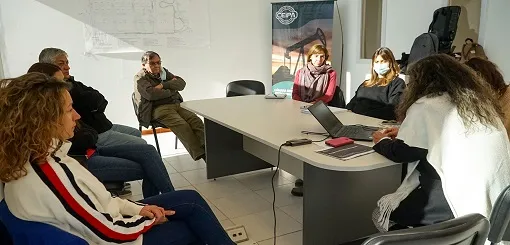 En la reunión acompañaron a Afione Juan Colombino y René Álvarez, por la Cámara de Comercio, Agostina Carnevale del Centro Pyme, Gianina Arbini, coordinadora de Parques, y la secretaria de Educación, Promoción del Empleo y Producción de Zapala, Jorgelina Almeira.