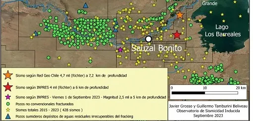 Javier Grosso, geógrafo de la Universidad Nacional del Comahue e integrante del equipo del Observatorio de Sismicidad Inducida, informó que ya no quedan dudas de que se trata de sismos inducidos por la actividad hidrocarburifera no convencional, además agregó que también se registraron sismos de menor magnitud el domingo cerca de Rincón de los Sauces en el área El Trapial, operada por la empresa estadounidense Chevrón y otro hoy martes.