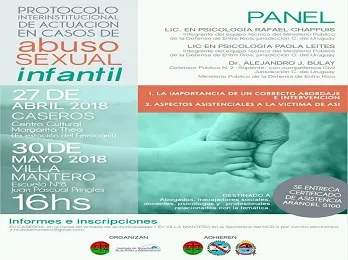 La vecina ciudad de Caseros organiza una jornada de capacitación, sobre el accionar de los estamentos del estado ante el posible caso de abuso sexual de menores. La misma estará a cargo del Instituto del Derecho de la Niñez y Adolescencia del Colegio de Abogados de Entre Ríos, este viernes 27 de abril a las 16 horas, en el centro Cultural “Margarita Thea”.
