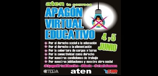 El APAGÓN VIRTUAL EDUCATIVO que estamos convocando los días jueves 4 y viernes 5 de junio, consiste en dos días en los que apagamos nuestras computadoras y celulares para NO realizar NINGUNA ACTIVIDAD VINCULADA A LO ESCOLAR, ya sean tareas o comunicaciones virtuales o actividades con los materiales impresos. Las y los Trabajadores de la Educación NO estaremos en clase, los y las estudiantes NO tendrán tareas. Es ésta nuestra forma de protestar y reclamar al Gobierno que resuelva los problemas educativos que venimos denunciando hace más de dos meses en la provincia de Neuquén.