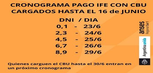El director de la UDAI Zapala de Anses, Carlos Pino, informó que los tres bancos con sucursales en la ciudad están habilitados para el pago del IFE de junio. También recordó que aquellas personas que no tramitaron su CBU podrán hacerlo hasta el 30 de junio.