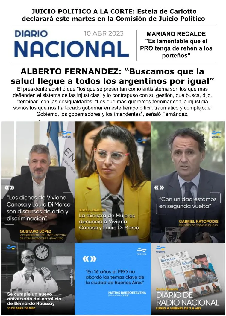 En su editorial, Darío Villarruel cuestionó "el ataque a la vicepresidenta Cristina Fernández y su hija Florencia Kirchner", en referencia a los discursos del odio de las periodistas Viviana Canosa y Laura Di Marco, en el canal LN+, quienes hablaron de una supuesta enfermedad de Florencia y una presunta responsabilidad al respecto de su madre.