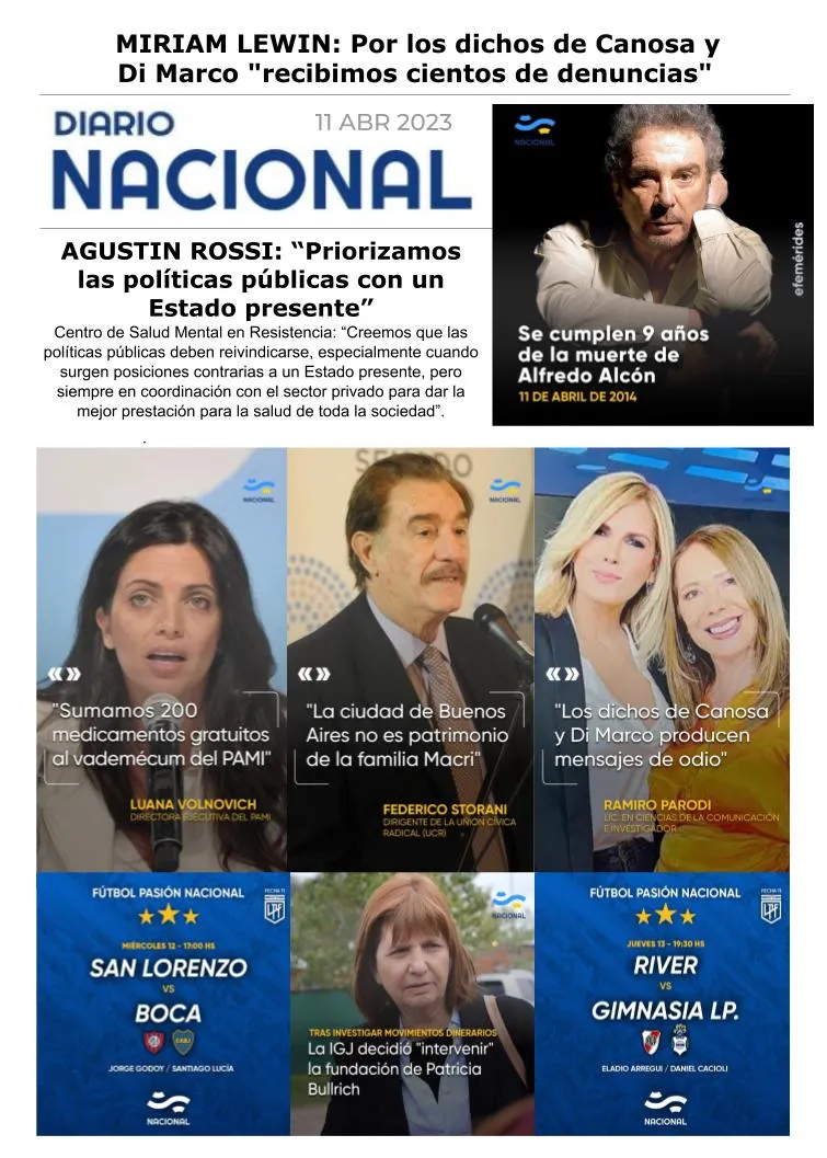 En relación a las declaraciones de Laura Di Marco sobre Florencia y Cristina Kirchner, Daniel Slucki, psicólogo y miembro de la Comisión Directiva del Colegio de Psicoanalistas, dijo: “Hay límites que no se pueden pasar, mientras aquí hay una clara intención de dañar a las figuras públicas. Que una persona sea pública no habilita a nadie a violar su privacidad ni habilita a emitir diagnósticos certeros o falsos”.
