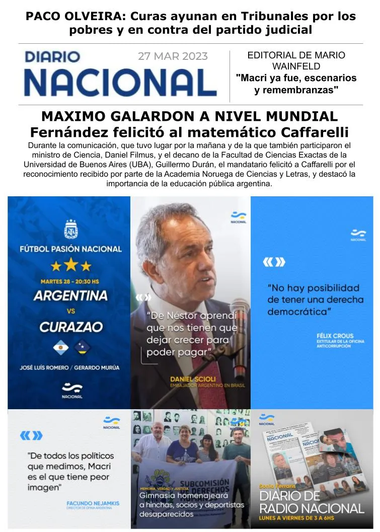 Durante la comunicación, que tuvo lugar por la mañana y de la que también participaron el ministro de Ciencia, Daniel Filmus, y el decano de la Facultad de Ciencias Exactas de la Universidad de Buenos Aires (UBA), Guillermo Durán, el mandatario felicitó a Caffarelli por el reconocimiento recibido por parte de la Academia Noruega de Ciencias y Letras, y destacó la importancia de la educación pública argentina.
