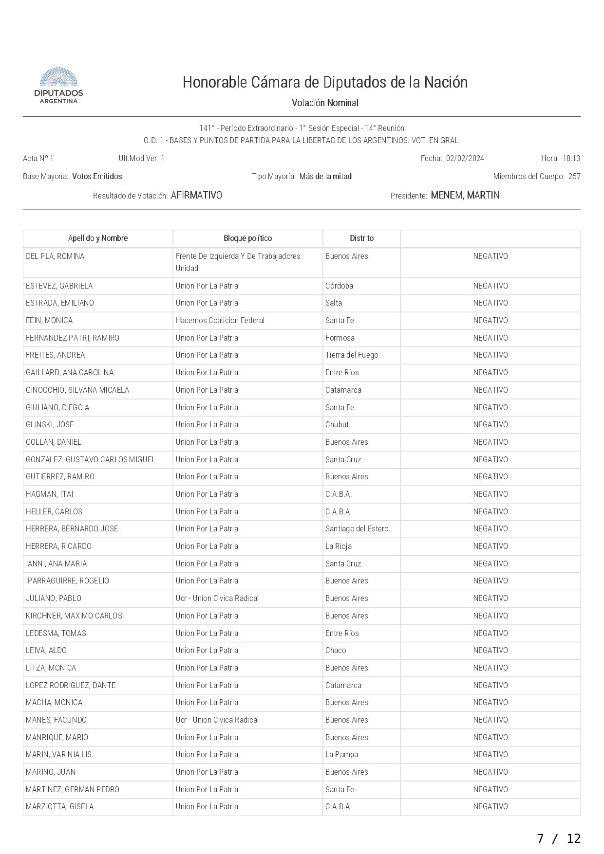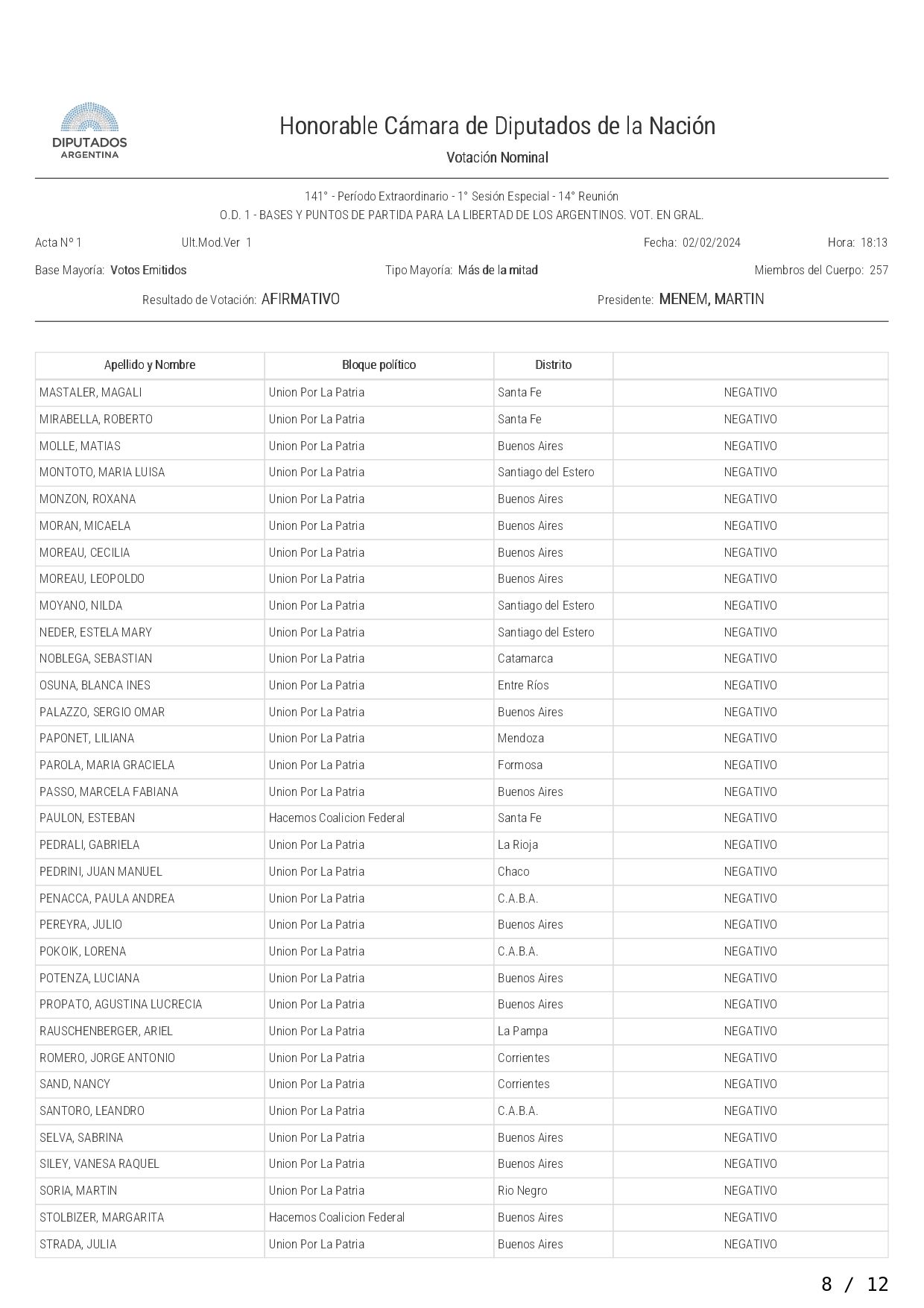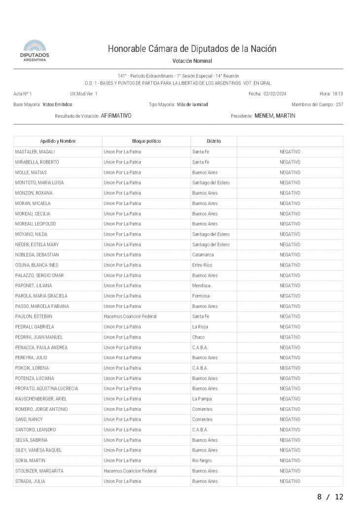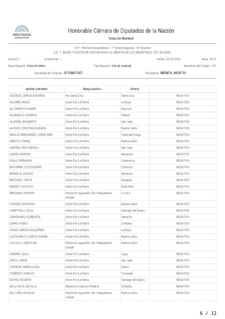 La iniciativa fue votada con el respaldo de los diputados de la Libertad Avanza, UCR, PRO, Hacemos Coalición Federal, Innovación Federal, Creo; Avanza La Libertad, Producción y Trabajo, Buenos Libre, Independencia y Unión Mendocina.