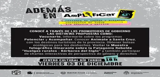 La segunda jornada del Certamen Amplificar, organizado por la Secretaria de Cultura de la provincia con el apoyo del Ministerio de Cultura de la Nación – a través del Programa Argentina Florece – se llevará a cabo en el Centro Cultural de Río Turbio.