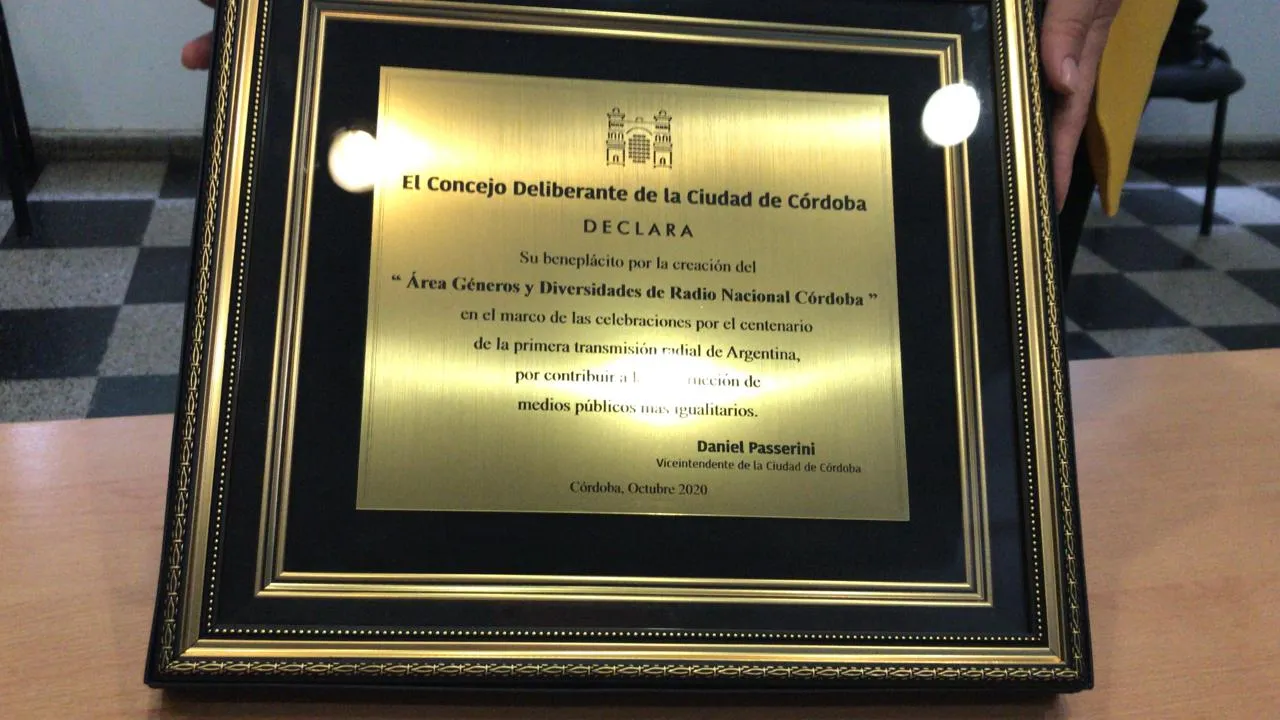 En el marco de su aniversario número 63, LRA 7 Radio Nacional Córdoba fue distinguida por el Honorable Concejo Deliberante de dicha ciudad, órgano que hizo entrega de un beneplácito en reconocimiento a la creación del Área de Géneros y Diversidad de la emisora pública del centro del país.
