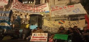 Salustiana, referente del Tercer Malón de la Paz, aseguró que "Estamos ya cumpliendo la medida de encadenarnos luego de que desde el 1ro de agosto que llegamos a Buenos Aires estamos sufriendo hostigamiento, discriminación, hemos presentado nota a diferentes sectores pero no obtuvimos ninguna respuesta frente a todos los pedidos, que es la nulidad de la reforma y la intervención federal en la provincia".