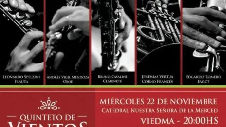 Como parte de los festejos por el Día de la Música, el Quinteto de Vientos de Río Negro se presentará esta noche, desde las 20, en la catedral de la capital provincial, con entrada gratuita.