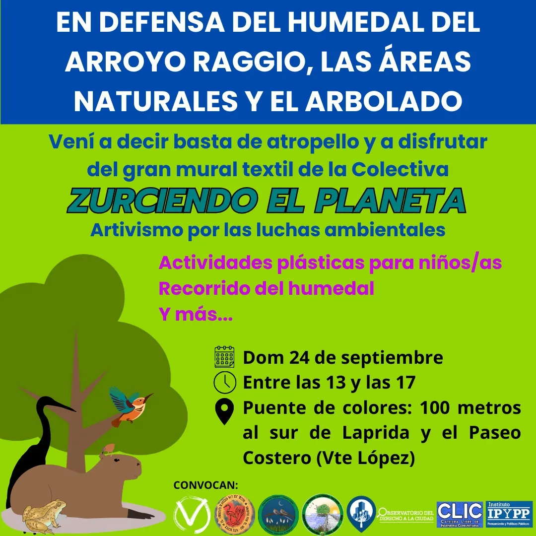 Asambleas y organizaciones vecinales de Vicente López y de CABA convocan a este encuentro el domingo en el marco de la lucha que llevan adelante en resguardo del humedal del arroyo Raggio, de otras áreas naturales ribereñas, de otros espacios verdes y el arbolado. La referente del colectivo Movida Ambiental Vicente López y de la Mesa de Gestión Ambiental de Vicente López explicó las motivaciones de esta convocatoria especial junto a la Colectiva Zurciendo el Planeta.