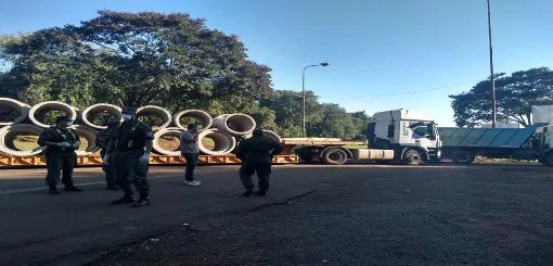 Con máquinas viales se bloqueó anoche la ruta nacional 12 para impedir que turistas argentinos sigan ingresando al país por el puente internacional Tancredo Neves. Cientos de argentinos están varados en la aduana sin regresar a sus provincias.