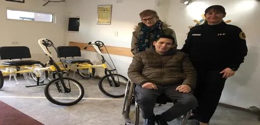 La Policía Federal circunscripción Comodoro Rivadavia fue intermediaria para concretar la donación de dos bicicletas adaptadas. “Es una bici para circular, para personas con discapacidad, pedaleamos con las manos”, indicó Brian Digan. Él representa a Chubut en competencias adaptadas “para mi es un orgullo, ahora estoy ansioso que salga alguna carrera”.