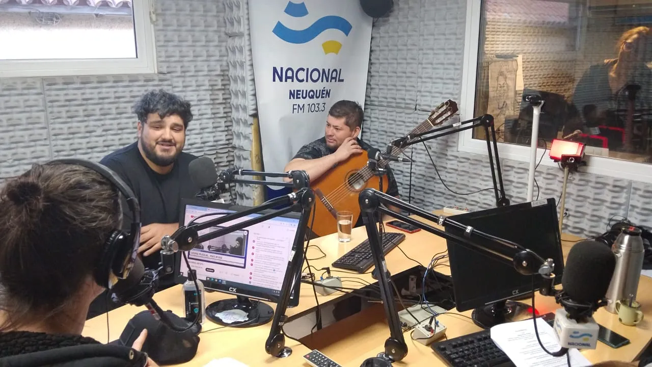 El músico y compositor neuquino Matías Rivas y el guitarrista Pablo Riquelme visitaron el estudio de LRA 43 Radio Nacional Neuquén, hablaron de su arte y tocaron en vivo durante el programa de Diego Ramos.
