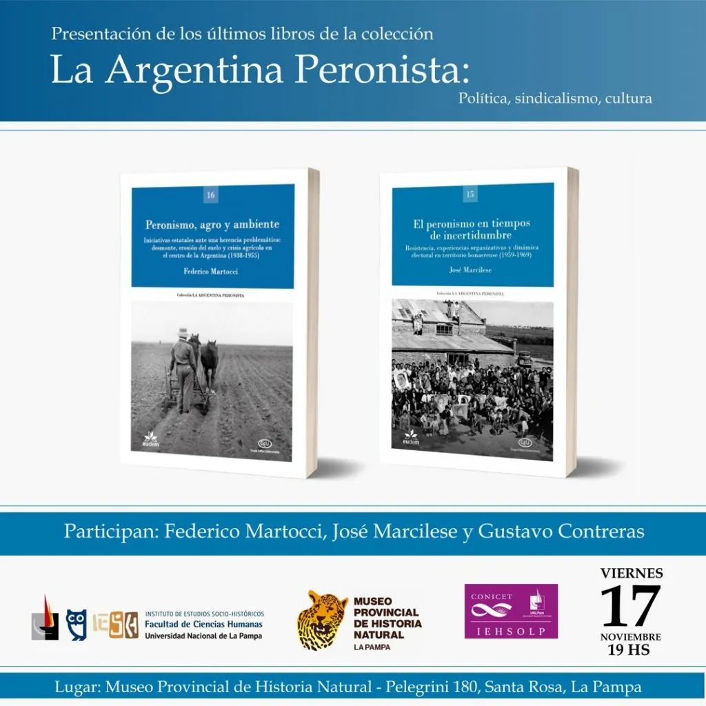 Federico Martocci, docente en la UNLPam e investigador del CONICET, se refirió a la presentación de su libro “Peronismo, agro y ambiente. Iniciativas estatales ante una herencia problemática: desmonte, erosión del suelo y crisis agrícola en el centro de Argentina (1938-1955)”.