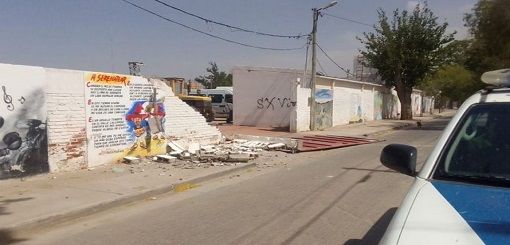 Por los fuertes vientos se cayó el paredón del predio de Serenata a Cafayate
