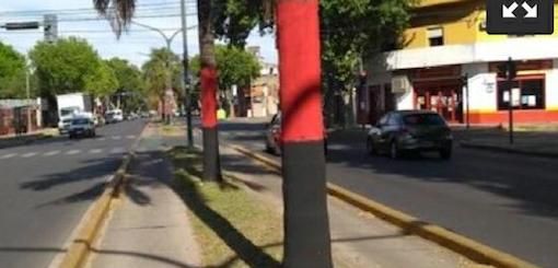 Reclamo por las pintadas de Newells en las palmeras del Parque Independencia